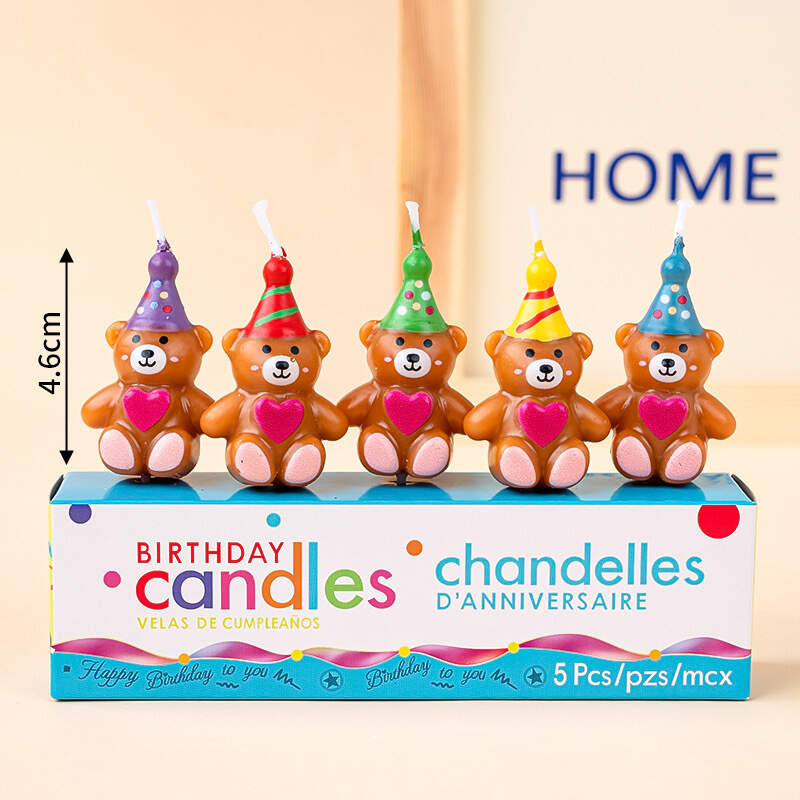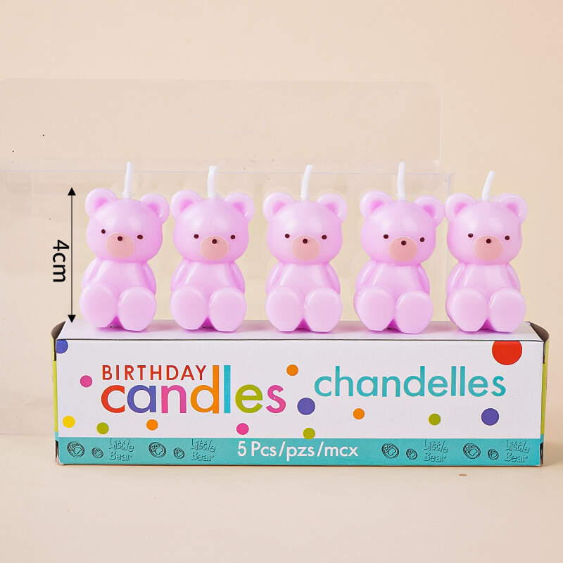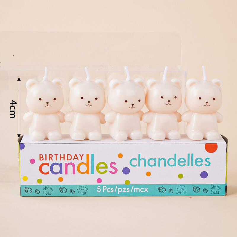 Product Name: Bear Birthday Candle Candle Type: Birthday Candle Material: Paraffin Wax Colors: Red, Yellow, White, Pink, Green, Purple Candle Size: 3.7cm * 2.9cm * 0.5cm Product Weight: 30g Craftsmanship: Handmade Usage: Party Decoration, Atmosphere Decor, Birthday Candle, Wedding Candle Factory supports customization, welcome to customize with your design. Colors can be customized; for specific details, please contact customer service.