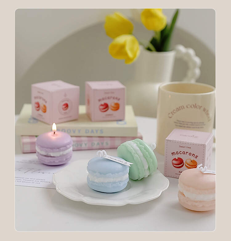 Product Name: Macaron-Shaped Candle Candle Type: Scented Candle Material: Paraffin Wax Colors: White, Pink, Yellow, Green, Purple Candle Size: 5cm x 5cm x 5cm Product Weight: 60g Craftsmanship: Handmade Uses: Party Decor, Atmosphere Decoration, Birthday Candle, Semi-Handmade Gift, Home Decoration Factory supports customization, welcome to customize with your design.