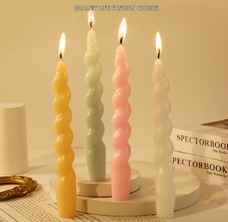 Product Name: Twisted Spiral Candle Candle Name: Spiral Candle Material: Paraffin Wax Colors: Red, Yellow, Green, Pink, Orange, Black, Brown Candle Size: 18.5cm * 2cm Product Weight: 51.8g Craft: Handmade Usage: Party Decoration, Atmosphere Decor, Birthday Candle Factory supports customization, welcome to customize with your designs.